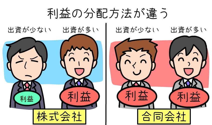 株式会社は出資を行っている株主に利益を分配し、合同会社は出資やである社員で分配します。株式会社は出資している額つまり株を保有している割合に応じて利益を分配しますが、合同会社は出資割合に関係なく社員同士の合意のもと自由に利益を分配することができます。つまり出資額の少ない社員であっても社員同士で合意がなされれば、会社への貢献度や個人業績などを理由に多くの利益を分配することもできます。