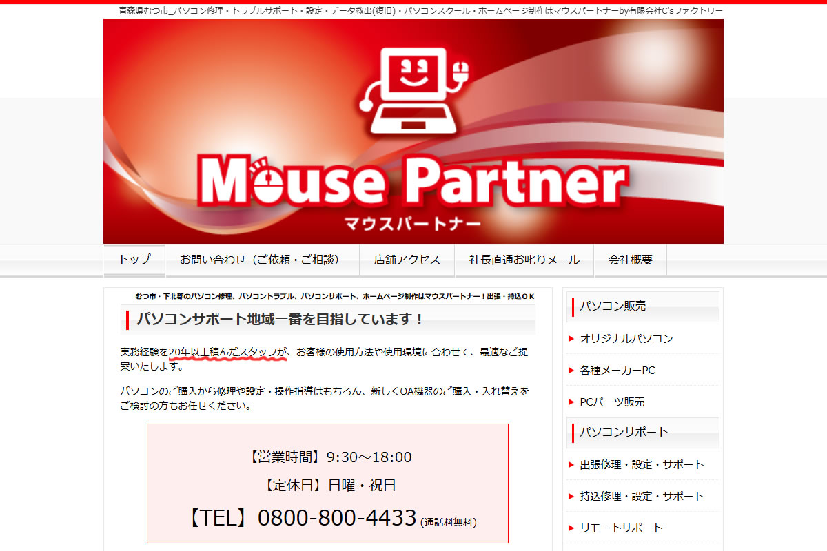 マウスパートナーは、青森県むつ市を拠点に、パソコンの販売、修理、設定、トラブルサポートなどを一貫して提供しています。経験豊富なスタッフが、持ち込み・出張の両方で対応し、地域のITニーズに応えています。