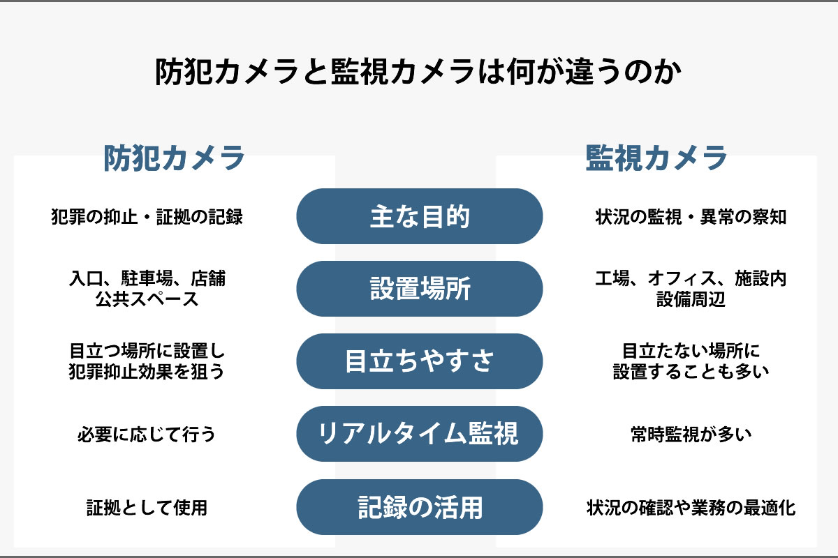 防犯カメラと監視カメラの具体的な違い