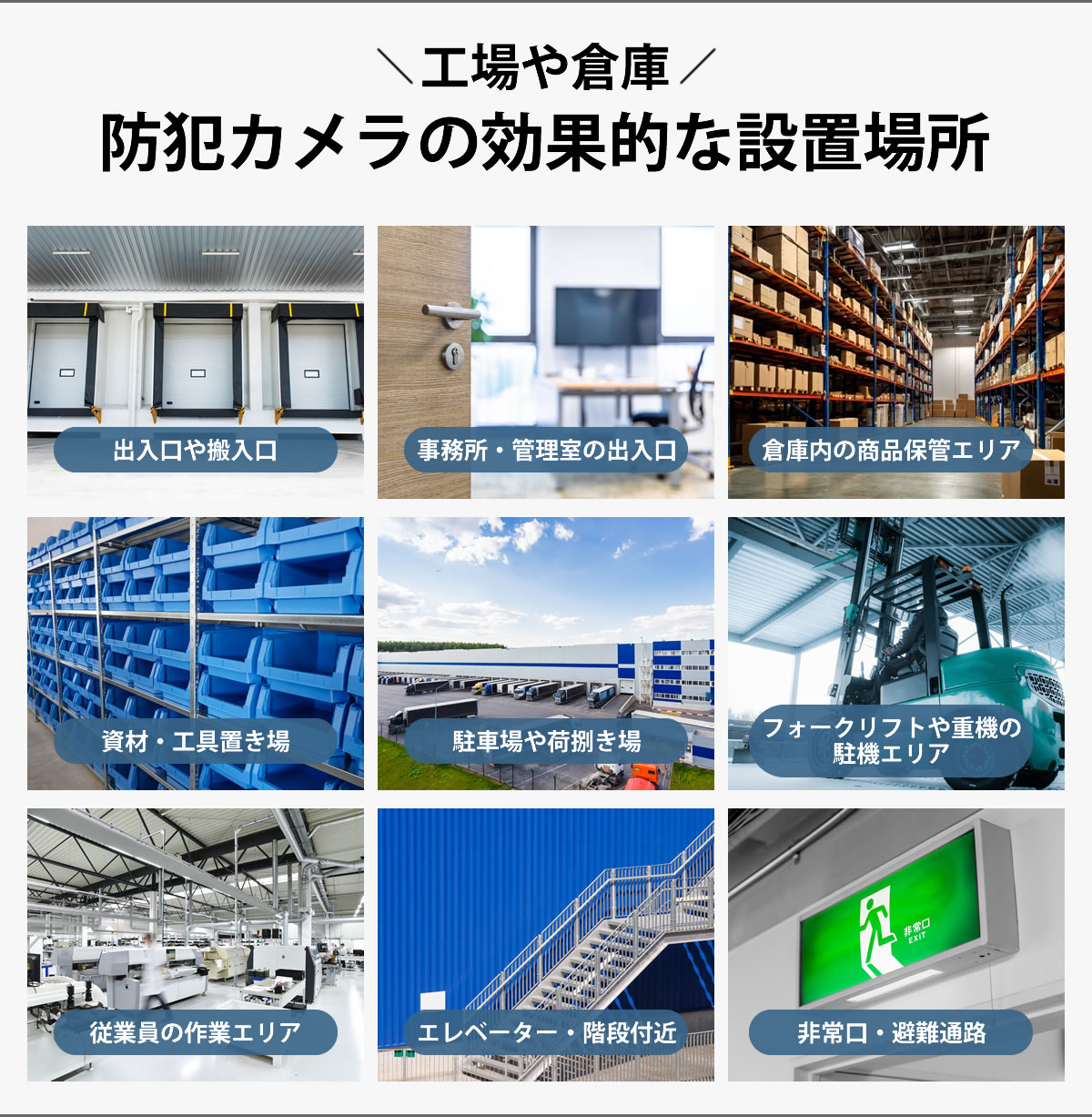 工場や倉庫の防犯カメラの効果的な設置場所