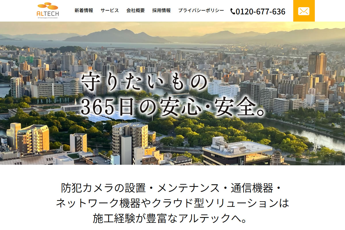 株式会社ALTECHは、防犯・監視・AIカメラの設置において豊富な実績を持つ企業です。広島市を拠点に、低価格での提案や設置後の保守サポートを提供しています。これにより、地域の安心・安全に貢献しています。