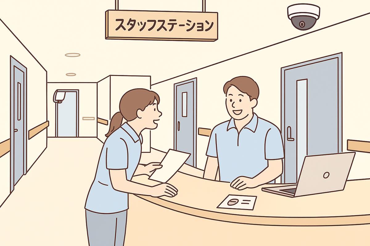 スタッフステーションは、職員が情報共有や業務連携を行う拠点となる場所です。この周辺にカメラを設置しておくことで、急変時の連携や対応の流れを記録でき、必要に応じて対応内容を振り返る際にも役立ちます。