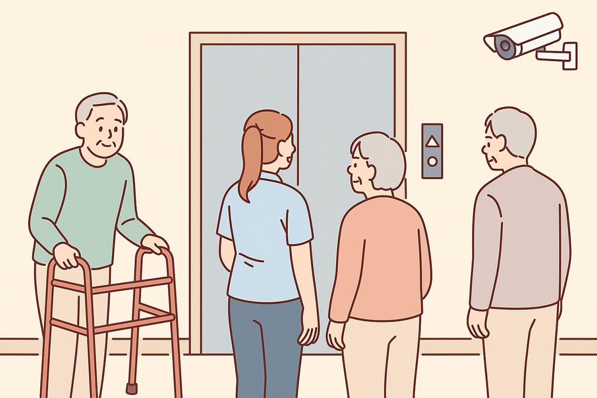 防犯カメラが常に稼働している環境では、利用者や職員が「見られている」と感じやすくなります。とくに高齢者や認知症の方にとっては、そうした意識がストレスになることもあります。