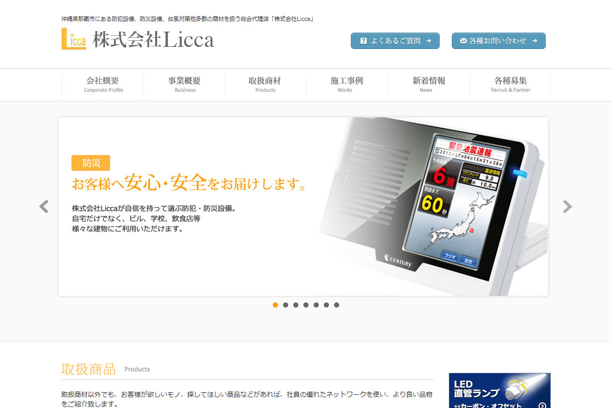 株式会社Liccaは、沖縄県那覇市を拠点に、防犯カメラやデジタルビデオレコーダーなどの多様な防犯設備を取り扱っています。HD-SDIボックス型カメラ、アナログ1.3Mボックス型カメラ、HD-SDIドーム型カメラ、アナログ1.3M屋内用ドームカメラ、HD-SDI屋外用赤外線内蔵カメラ、HD-SDI10倍ズームPTZカメラ、HD-SDI耐衝撃形屋外用カメラなど、設置場所や用途に応じた最適な製品を提供しています。