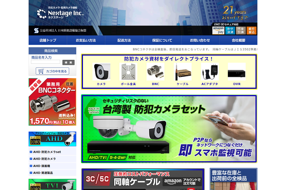 ネクステージ株式会社では、AHD防犯カメラセット、TVIワンケーブルカメラセット、HD-SDI/EX-SDIカメラ、UNIVIEW製品、無線ネットワークカメラセットなど、多様な防犯カメラ製品を取り揃えています。これにより、お客様のニーズや設置環境に最適な製品を選択することが可能です。